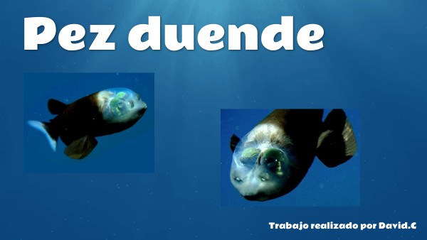 - El pez duende, " Macropinna Microstoma " es un pez marino que se encuentra distribuido por el océano pacífico, Atlántico e Índico. Su nombre proviene del griego "Ophiste" + "Proktos". Este pez, está formado por unas escamas muy largas y en forma de V. Es un pez de color gris magenta, con una cola que como en su cabeza, es transparente. Sin embargo, al contrario de la cabeza, no se puede ver nada a través de su cuerpo, ya que no es transparente, es traslúcido. Aunque este animal parezca fácil de cazar, por su cabeza transparente, no quiere decir que sea un blanco fácil para las medusas, ya que en su cabeza cuenta con un escudo que le permite defenderse del veneno de las medusas.