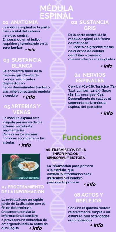La médula espinal es la parte más caudal del sistema nervioso central Empezando en el bulbo raquídeo y terminando en la zona lumbar