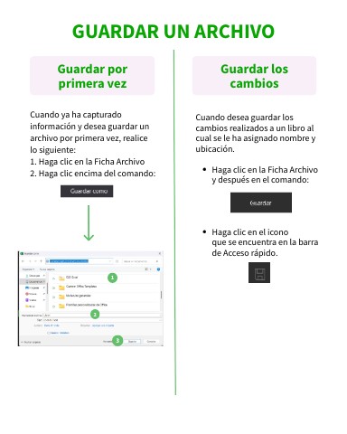 Cuando ya ha capturado información y desea guardar un archivo por primera vez, realice lo siguiente: 1. Haga clic en la Ficha Archivo 2. Haga clic encima del comando: