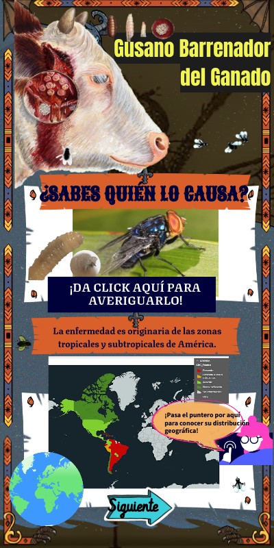 REFERENCIAS: Gusano barrenador del ganado. (2021, mayo 26). Iaea.org. https://www.iaea.org/es/servicios/programa-de-cooperacion-tecnica/gusano-barrenador-del-ganado Servicio Nacional de Sanidad, & Agroalimentaria, I. y. C. (s/f). Miasis por Gusano Barrenador. gob.mx. Recuperado el 24 de mayo de 2023, de https://www.gob.mx/senasica/documentos/miasis-por-gusano-barrenador?state=published Gusano, E. (s/f). Los gusanos barrenadores son larvas de moscas (gusanos) que se alimentan de. Iastate.edu. Recuperado el 24 de mayo de 2023, de https://www.cfsph.iastate.edu/Factsheets/es/miasis_por_el_gusano_barrenador.pdf