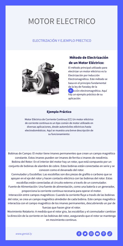 El método principal utilizado para electrizar un motor eléctrico es la Electrización por Inducción Electromagnética. Este método se basa en el principio fundamental de la ley de Faraday de la inducción electromagnética. Aquí hay un ejemplo práctico de su aplicación: