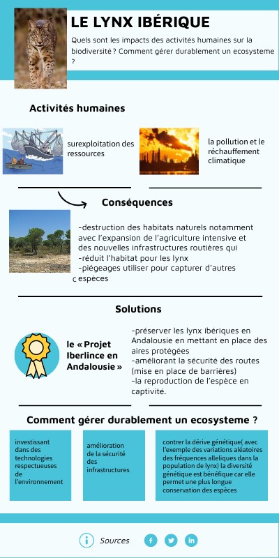 -préserver les lynx ibériques en Andalousie en mettant en place des aires protégées-améliorant la sécurité des routes (mise en place de barrières) -la reproduction de l’espèce en captivité.