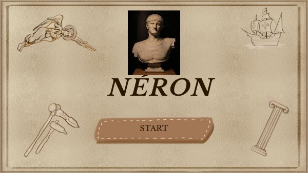 Il est fils de Domitius Aenobarbus et de Agrippine la Jeune. Néron se marie avec trois femmes : Claudia Octavia , Poppée et Statilia Messalina A l'âge de 30 ans Néron provoque sa mort en se suicidant le 9 juin 68 à Rome