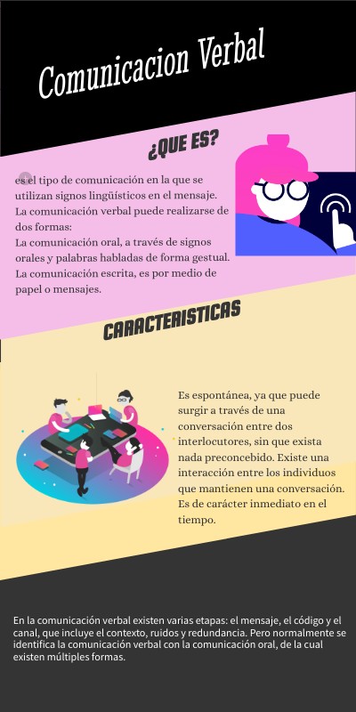 es el tipo de comunicación en la que se utilizan signos lingüísticos en el mensaje. La comunicación verbal puede realizarse de dos formas: La comunicación oral, a través de signos orales y palabras habladas de forma gestual. La comunicación escrita, es por medio de papel o mensajes.