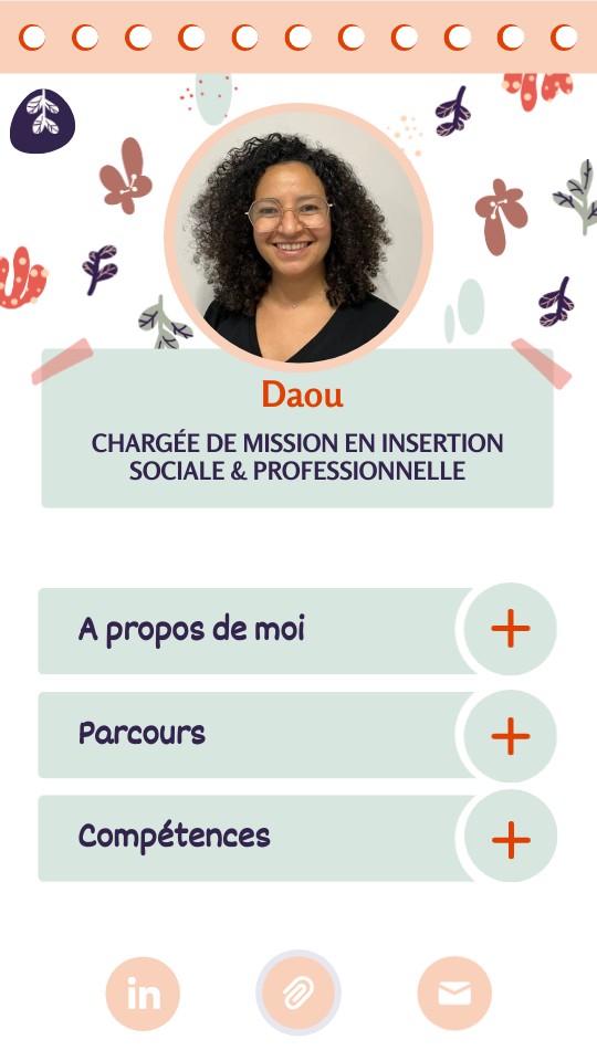Je suis actuellement Chargée de Mission en Insertion Professionnelle au sein d'une association rennaise. Mes principales missions consistent à développer le pouvoir d'agir de publics fragiles dans leur insertion vers l'emploi durant leur contrat aidé. Je vous invite à découvrir mon parcours et mes aspirations au travers de ce e-portefolio! Daou OUZZINE