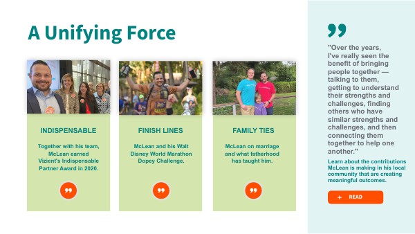 "Over the years, I've really seen the benefit of bringing people together — talking to them, getting to understand their strengths and challenges, finding others who have similar strengths and challenges, and then connecting them together to help one another."