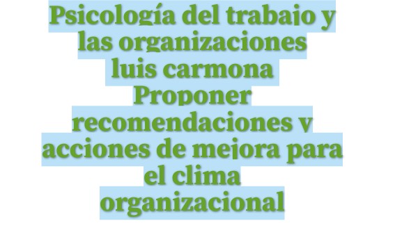 Psicología del trabajo y las organizaciones luis carmona Proponer recomendaciones y acciones de mejora para el clima organizacional
