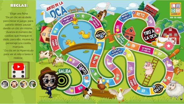 * Elige una ficha*Da un clic en el dado para iniciar el juego, para pararlo debes pausar dando un clic ahi mismo. * Avanza el número de casillas que marque el dado, para ello, mueve tu personaje a la casilla marcada.* Da clic en la Hiperviculo para ver el reto o tarea a realizar.