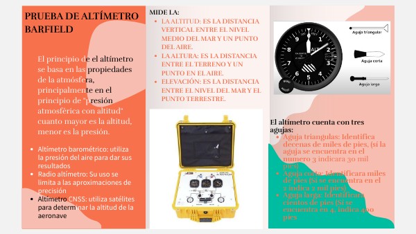 - Altímetro barométrico: utiliza la presión del aire para dar sus resultados