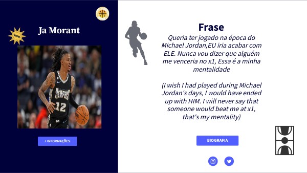 Queria ter jogado na época do Michael Jordan,EU iria acabar com ELE. Nunca vou dizer que alguém me venceria no x1, Essa é a minha mentalidade(I wish I had played during Michael Jordan's days, I would have ended up with HIM. I will never say that someone would beat me at x1, that's my mentality)