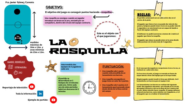El partido comenzará con un salto entre dos en el centro de la pistaEl jugador que tiene el aro no puede dar más de dos pasos y tampoco puede tener el aro en su poder más de 5 segundos o se sancionará con un saque de banda a favor del equipo contrario. El defensor no podrá acercarse a menos de 1 metro al jugador que tiene la rosquilla. El jugador que ataca no puede estar en la zona donde debe puntuar (el círculo) más de 5 segundos.