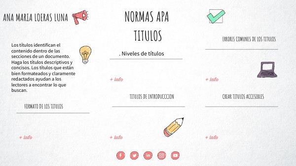Los títulos identifican el contenido dentro de las secciones de un documento. Haga los títulos descriptivos y concisos. Los títulos que están bien formateados y claramente redactados ayudan a los lectores a encontrar lo que buscan.