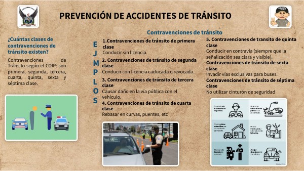 Contravenciones de Tránsito según el COIP: son primera, segunda, tercera, cuarta, quinta, sexta y séptima clase.