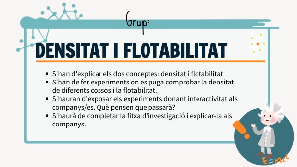 - S'han de fer experiments on es puga comprobar la densitat de diferents cossos i la flotabilitat.