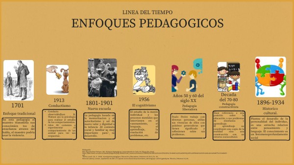 Bibliografía: MSC Olga Martínez Palmera. (00). Enfoques Pedagógicos. Universidad de la Costa. 00. Educación virtual. https://eduvirtual.cuc.edu.co/moodle/pluginfile.php/362689/mod_resource/content/1/PRESENTACION%20%20CATEGOR%C3%8DAS%20Y%20ENFOQUES%20PEDAGOGICOS%20OLGA%20MART%C3%8DNEZ.pdf Patiño, Luceli. (18 - X - 2006). Investigación pedagógica. Educación y Educadores, (Volumen 10. No 1), 54 - 60, Mota de Cabrera, Carmen. (septiembre de 2007). El aspecto sociocultural del pensamiento y del lenguaje: visión Vygotskyana. Educere, (Volumen 11), 00,