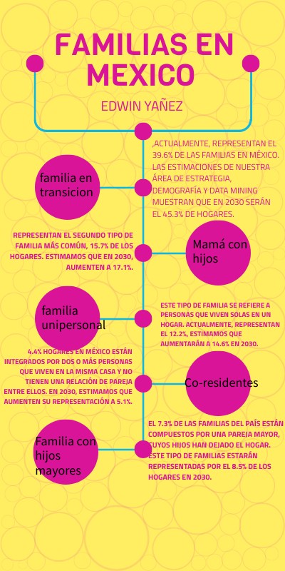 ,Actualmente, representan el 39.6% de las familias en México. Las estimaciones de nuestra área de Estrategia, Demografía y Data Mining muestran que en 2030 serán el 45.3% de hogares.