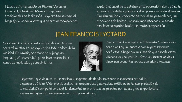 Nacido el 10 de agosto de 1924 en Versalles, Francia, Lyotard desafió las concepciones tradicionales de la filosofía y exploró temas como el lenguaje, el conocimiento y la cultura contemporánea.