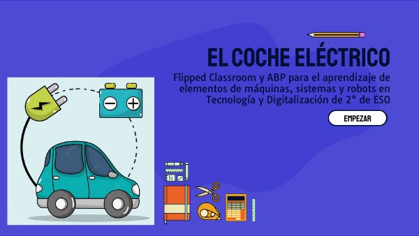 El coche eléctrico. Flipped classroom y ABP para el aprendizaje de elementos de máquinas, sistemas y robots en Tecnología y Digitalización de 2° de ESO. Los alumnos de 2° de ESO van a realizar en la asignatura de Tecnología y Digitalización una maqueta de un coche eléctrico para trabajar el bloque de contenidos de elementos de máquinas, sistemas y robots (Decreto 156/2022). Actividad 1: Máquinas y mecanismos Para empezar tendrán que aprender a analizar el funcionamiento de mecanismos de transmisión y transformación del movimiento y sus aplicaciones prácticas, así como realizar cálculos sencillos de relación de transmisión y velocidades aplicados a pequeños proyectos. Para ello, aplicando la metodología de flipped classroom, deberán visualizar un vídeo explicativo que se proporciona a través de la plataforma Google Classroom, así como realizar un Kahoot para saber si han entendido los conceptos. En la clase siguiente se resolverán las dudas, y proporcionará un boletín de ejercicios puntuable con problemas sencillos sobre relación de transmisión y velocidades en máquinas y mecanismos.