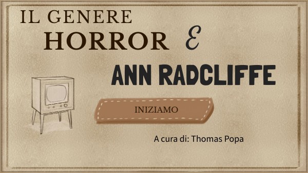 Per il mio elaborato d’esame ho scelto Ann Radcliffe perché uno tra i miei tanti hobby è leggere, e uno tra i miei generi preferiti è il genere horror.Io avevo già pensato ad un personaggio: al mio autore preferito Stephen King dopodichè mi dissero che non lo potevo scegliere cosi pensai ad Ann Radcliffe. Conoscevo già questa autrice poichè non è famosissima ma fu una delle prime scrittrici donna di questo genere ed avevo visto anche un film che parlava di lei e la sua storia che mi piacque molto.