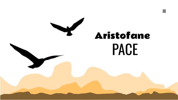 Personaggi: Il contadino Trigeo Ermes Il gigante Polemo Il servo Tumulto Pace(Eirene) Opora Teoria