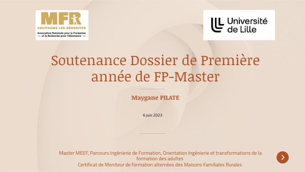 Master MEEF, Parcours Ingénierie de Formation, Orientation Ingénierie et transformations de la formation des adultes Certificat de Moniteur de formation alternées des Maisons Familiales Rurales