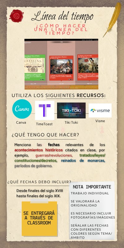 trabajo individual Se valorará la originalidad es NECESARIO INCLUIR FOTOGRAFÍAS/IMÁGENES SEÑALAR LAS FECHAS CON DIFERENTES COLORES SEGÚN TEMA/ÁMBITO