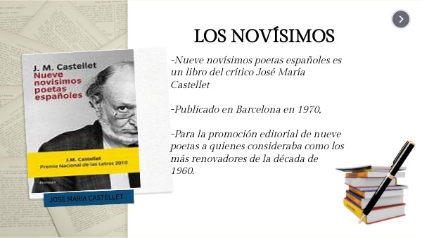 -Nueve novísimos poetas españoles es un libro del crítico José María Castellet -Publicado en Barcelona en 1970, -Para la promoción editorial de nueve poetas a quienes consideraba como los más renovadores de la década de 1960.