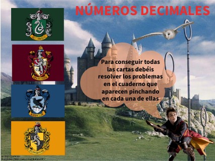 Consigue las tarjetas de las 4 casas de Harry Potter a través de la resolución de problemas de números decimales para 5º de Educación Primaria