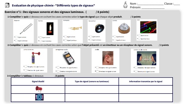Exercice n°1 : Des signaux sonores et des signaux lumineux. ( / 8 points)