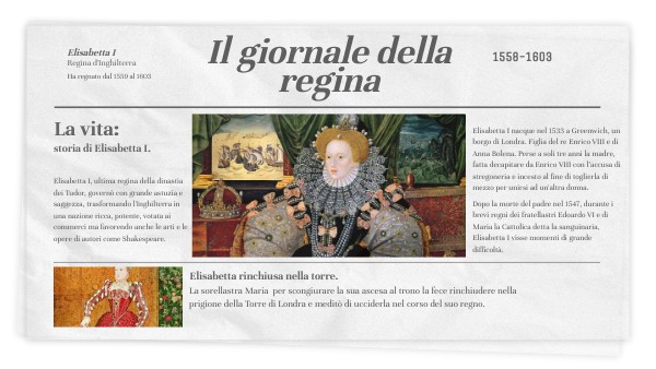 Edizione speciale riguardo a: Elisabetta I Tudor, regina d' Inghilterra. Speriamo che questi articoli siano stati di vostro gradimento. Alessandro Oliverio