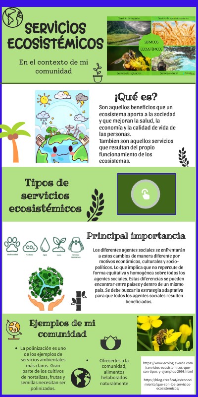 https://www.ecologiaverde.com/servicios-ecosistemicos-que-son-tipos-y-ejemplos-2998.html https://blog.creaf.cat/es/conocimiento/que-son-los-servicios-ecosistemicos/