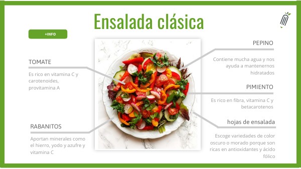 Contienen minerales como calcio, fósforo, hierro & zinc. en esta ensalada los utilizamos además como fuente de carbohidrato