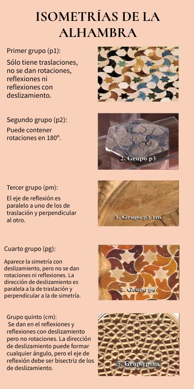 Grupo séptimo (pmg): Los mosaicos que pertenecen a este grupo se forman mediante reflexiones y rotaciones de 180º (ejesbinarios). El centro de rotación es el punto medio del lado que no es el eje de reflexión.