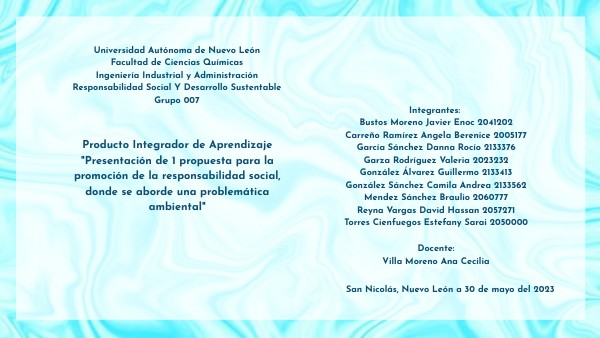 Universidad Autónoma de Nuevo LeónFacultad de Ciencias Químicas Ingeniería Industrial y Administración Responsabilidad Social Y Desarrollo Sustentable Grupo 007