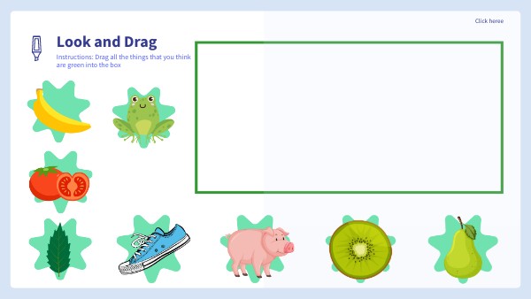 Instructions: Drag all the things that you think are green into the box