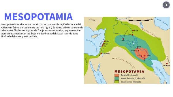 Los sumerios, la primera civilización de la historia, que desarrollaron avances en escritura, matemáticas, astronomía, arte y religión. Los acadios, que bajo el liderazgo de Sargón crearon el primer imperio de la historia, unificando a los sumerios y otros pueblos de la región. Los babilonios, que bajo el reinado de Hammurabi establecieron un código de leyes y una cultura floreciente en la ciudad de Babilonia. Los asirios, que se destacaron por su poder militar, su organización administrativa y su crueldad con los pueblos sometidos. Los neobabilonios, que bajo el reinado de Nabucodonosor II reconstruyeron Babilonia y la convirtieron en una de las maravillas del mundo antiguo.