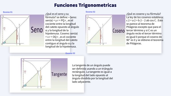 ¿Qué es el seno y su fórmula? se define: • Seno: sen(α) = y r = PQ r , es el cociente entre la longitud del cateto opuesto al ángulo α y la longitud de la hipotenusa. Coseno: sen(α) = x r = OQ r , es el cociente entre la longitud del cateto contiguo al ángulo α y la longitud de la hipotenusa.