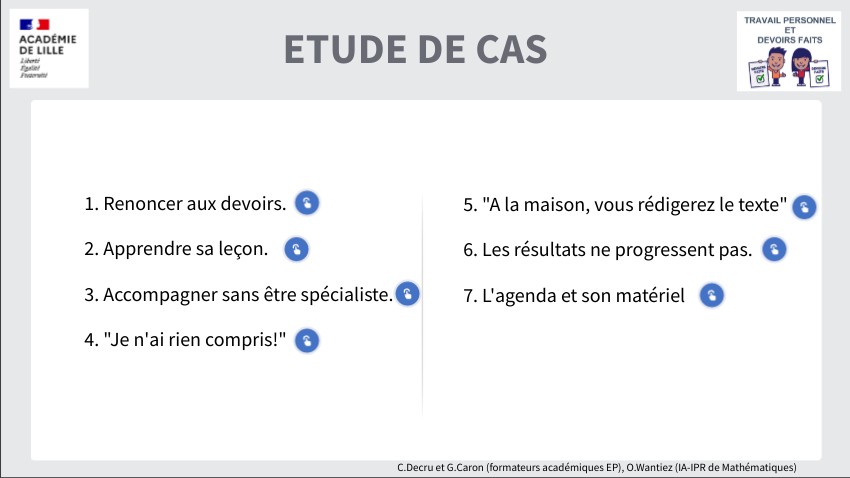- Donner des devoirs pour conscientiser le travail fait en classe et ajuster la compréhension.