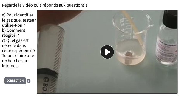 a) Pour identifier le gaz quel testeur utilise-t-on ?b) Comment réagit-il ?c) Quel gaz est détecté dans cette expérience ? Tu peux faire une recherche sur internet.
