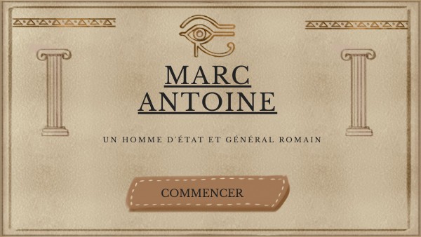 né en 83 av. J.-C.,Marc Antoine a révélé des talents militaires et une passion pour l'action dès son plus jeune âge. À 20 ans, il a intégré l'armée romaine et s'est distingué lors de plusieurs campagnes militaires .En 54 av. J.-C., Marc Antoine a été élu tribun de la plèbe, lui permettant ainsi de rencontrer Jules César.En 44 av. J.-C. il est nommé co-consul. L'assassinat de César a profondément marqué Marc Antoine, le poussant à se lancer dans une quête de vengeance.