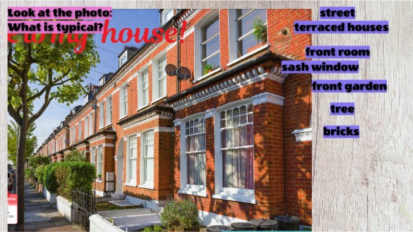 In British houses, There is a front garden. There are bricks. There are sash windows. There is + singular There are + plural Where do you live? I live in a house / a flat / an apartment. I live at 13 rue du Commanadant Charcot in Lyon. at + numéro de la rue et rue in + ville / + pays + / nom de la rue sans le numéro