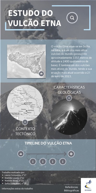 O vulcão Etna situa-se em Sicília, na Itália, e é um dos mais altos vulcões do mundo (possuindo aproximadamente 3357 metros de altitude e 2400 quiilómetros de base). É também um dos vulcões mais ativos do mundo, tendo a sua erupção mais atual ocorrido a 21 de maio de 2023.