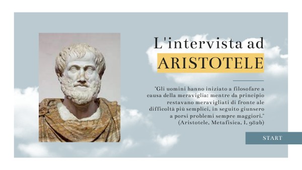 "Gli uomini hanno iniziato a filosofare a causa della meraviglia: mentre da principio restavano meravigliati di fronte ale difficoltà più semplici, in seguito giunsero a porsi problemi sempre maggiori."(Aristotele, Metafisica, I, 982b)