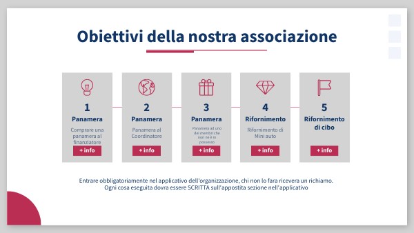 Entrare obbligatoriamente nel applicativo dell'organizzazione, chi non lo fara ricevera un richiamo.Ogni cosa eseguita dovra essere SCRITTA sull'appostita sezione nell'applicativo