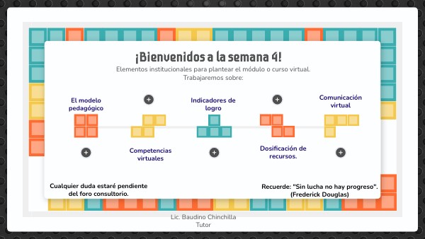 Elementos institucionales para plantear el módulo o curso virtual.Trabajaremos sobre:
