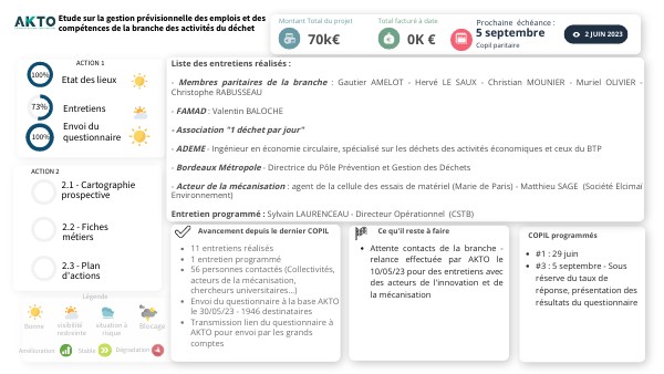 - Attente contacts de la branche - relance effectuée par AKTO le 10/05/23 pour des entretiens avec des acteurs de l'innovation et de la mécanisation