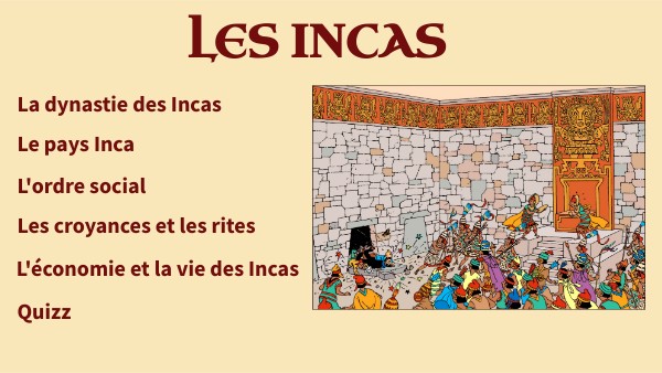 - Les Incas : civilisation précolombienne qui vivait au 13ème siècle.