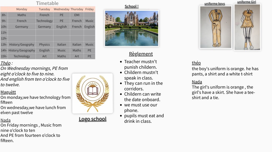 MaguèttOn monday,we have technology from fifteen On wednesday,we have lunch from elven past twelve