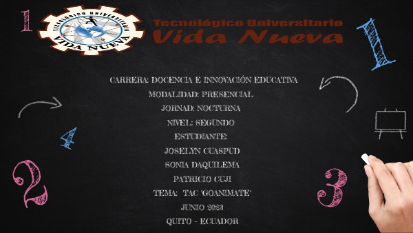 CARRERA: DOCENCIA E INNOVACIÓN EDUCATIVA MODALIDAD: PRESENCIAL JORNAD: NOCTURNA NIVEL: SEGUNDO ESTUDIANTE: JOSELYN CUASPUD SONIA Daquilema PATRICIO CUJI TEMA: TAC "GOANIMATE" JUNIO 2023 QUITO – ECUADOR