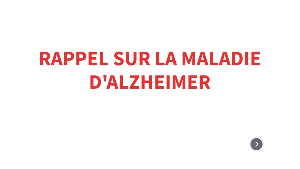 RAPPEL SUR LA MALADIE D'ALZHEIMER